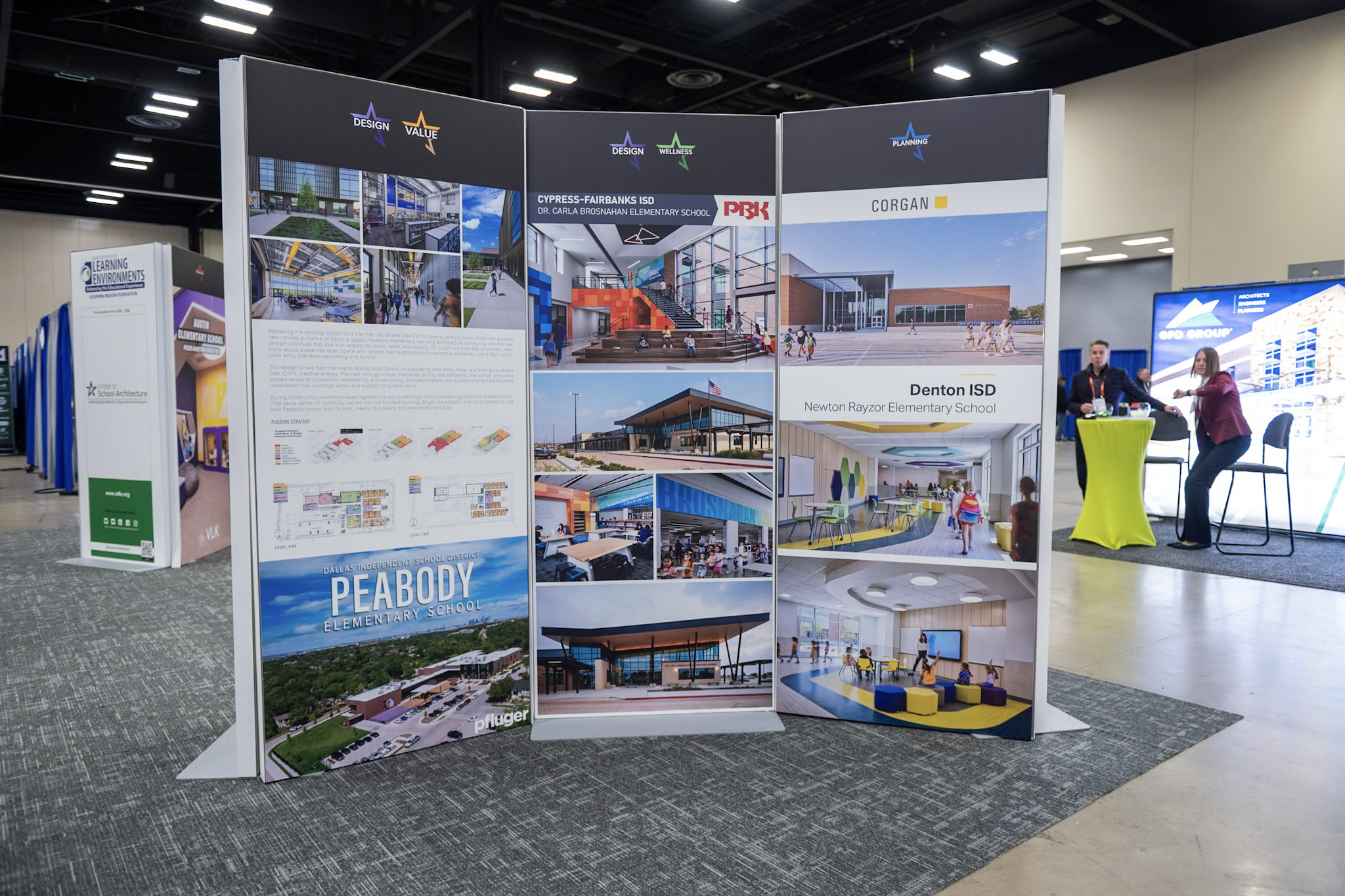The TASA/TASB Exhibit of School Architecture (EoSA) showcases new and renovated Texas schools and celebrates excellence in planning and design of the learning environment. In 2025-2026, 43 projects were nominated for the exhibit and displayed at txEDCON 2025, the TASA|TASB Convention. These projects were also on display at the 2026 Midwinter Conference, and those that received at least four stars of distinction are up for the Caudill award, with the winners being recognized during the First General Session of the Midwinter Conference. Visit the exhibit to gain new vision and expanded design ideas for your own district, and learn more about the Exhibit of School Architecture.
